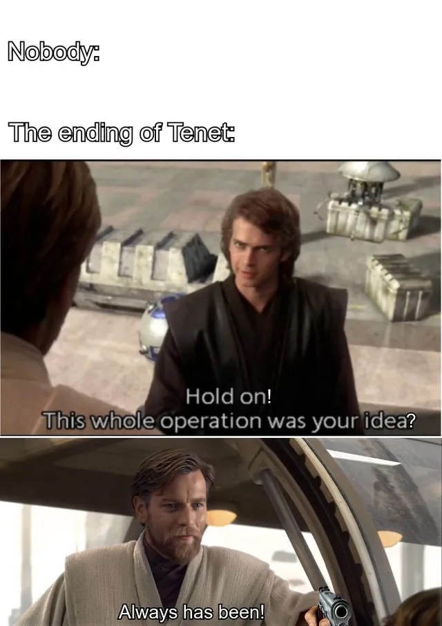 His next film, tenet received the same treatment after it was released on september 3rd, 2020.. Its a reference to the fact that he has trouble understanding concept of time in his movies. So remembering the trilogy, check out the funniest christopher nolan batman memes that will make you laugh out loud: On january 12th, 2021, the subreddit /r/tenet 3 had a variation of the meme uploaded by redditor /u/theumarahmed, this time showing the movie tenet being played on an apple watch , receiving … From james bond to christopher nolan movies it's always the same. His next film, tenet received the same treatment after it was released on september 3rd, 2020. Crossposted by 5 minutes ago.